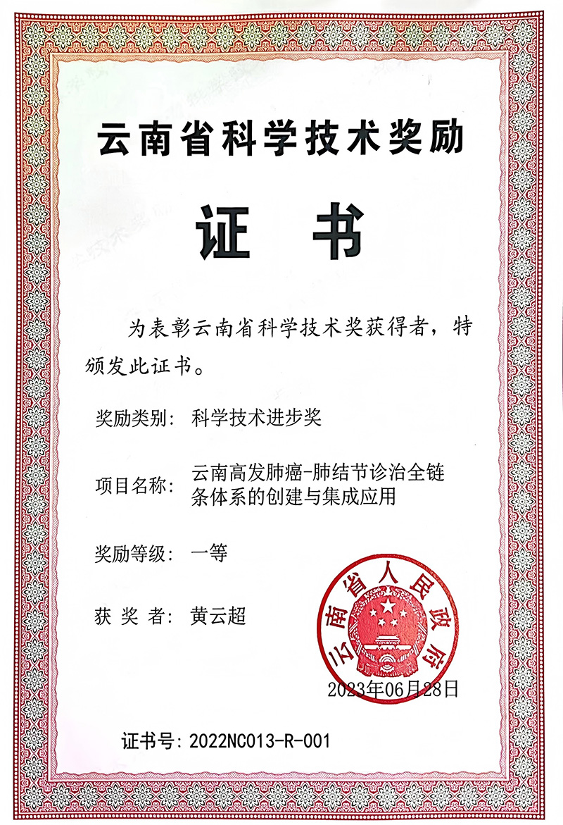 2023年度云南省科学技术进步奖一等奖 - 黄云超