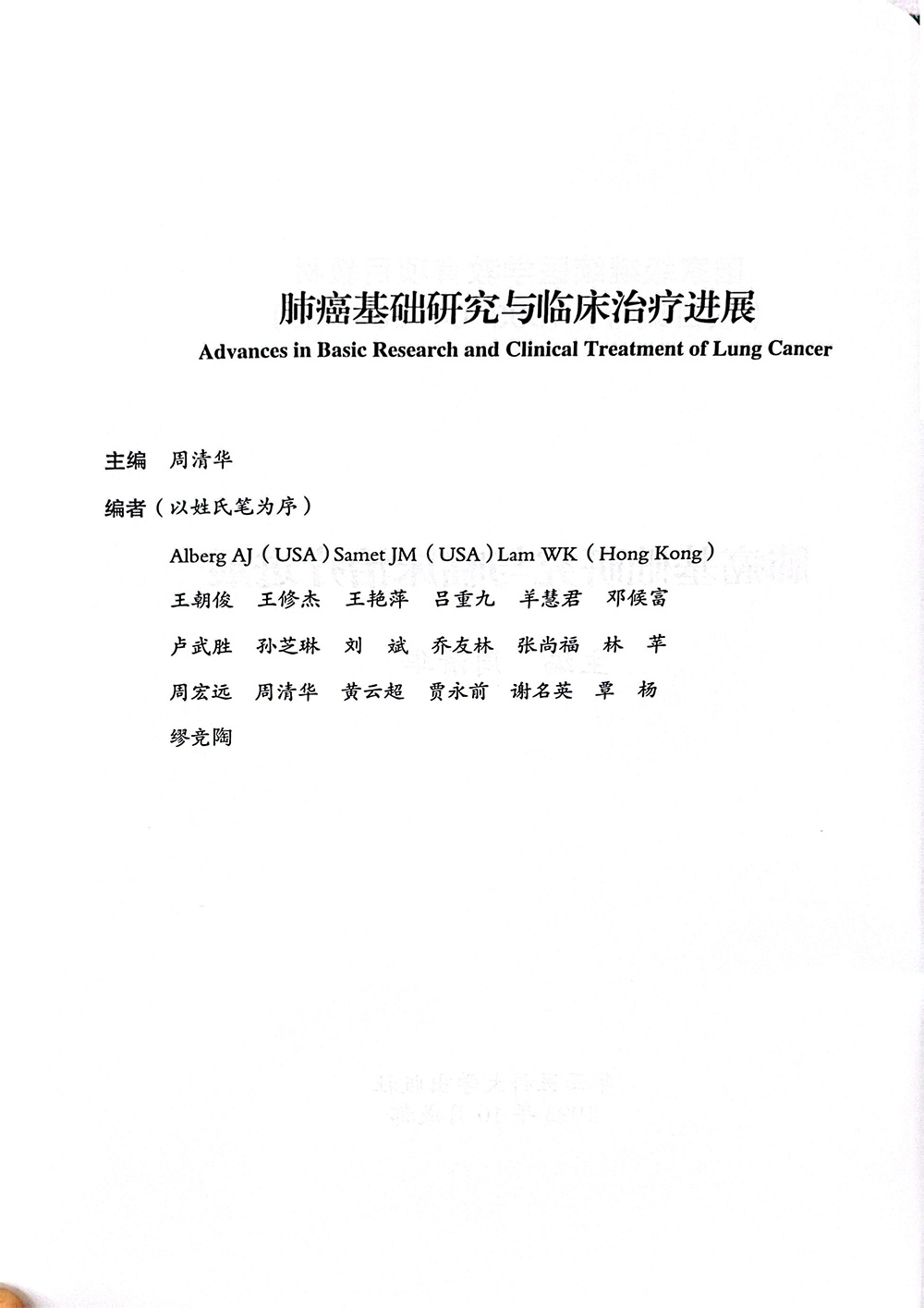 名称:《肺癌基础研究与临床治疗进展》