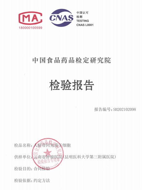 重点实验室制备的脐带间充质干细胞三批次均获中检院检验报告