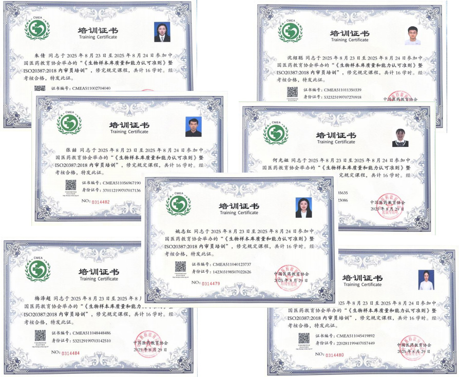 到北京大学肿瘤医院、北京大学第一医院、清华大学长庚医院、湘雅医院、湘雅二医院、长沙爱尔眼科医院、浙江省肿瘤医院、北京生物样本资源库、昆明医科大学第一、第二附属医院、参观培训,并获得相关证书。